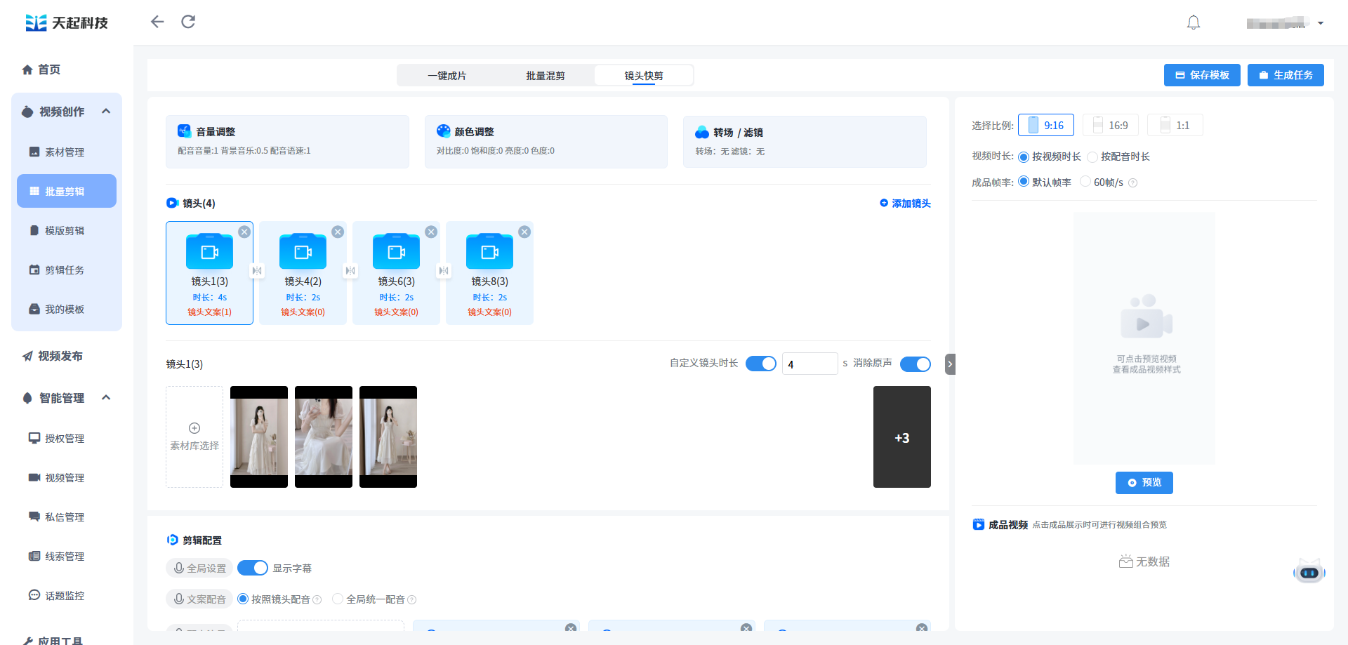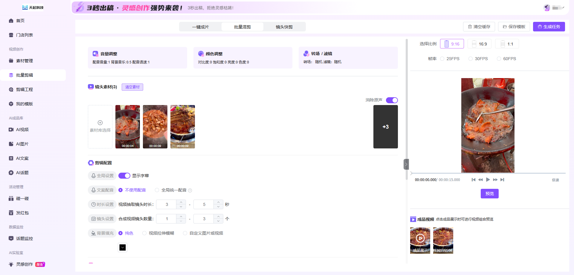 一键开启批量混剪,海量视频瞬间成片,创作高效无忧